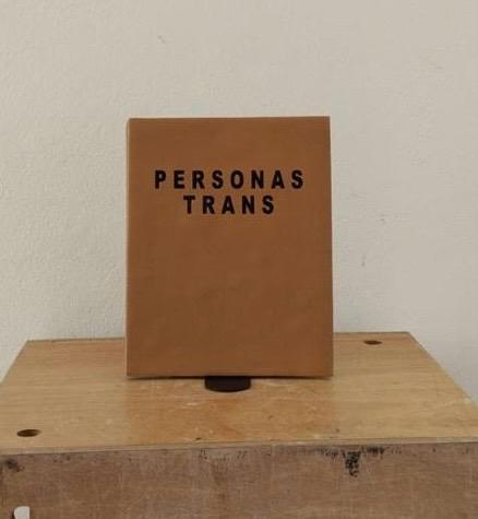 Un libro de artista donde la portada tiene impreso en vinil negro brillante “personas trans”, a la hora de tomarlo la textura de la portada es parecida a la piel humana, dentro esta esta lo que parecería ser un catálogo en couche de pornografía, específicamente de la categoría transgénero, e intercalando entre estas páginas donde te intentan vender personas están en acetatos datos duros acerca del acoso y cosificación de las personas trans, estadísticas sobre victimas trans que sufrieron abuso y algunas imágenes distorsionadas de capturas de pantalla a videos pornográficos, quitándoles características como el rostro a las personas que aparecen ahí.