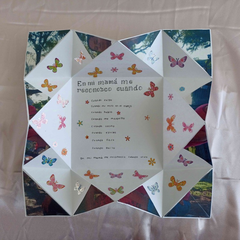 Esta pieza es una reflexión introspectiva y de conexión con las mujeres del linaje familiar de la artista, se reconoce a sí misma en ellas a través de gestos, acciones, gustos, etc.